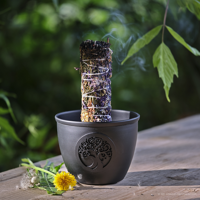 - Räuchergefäß: Benutze Sie ein feuerfestes Gefäß, zum Beispiel eine Räucherschale und fülle diese mit Sand, um die Hitze zu isolieren.