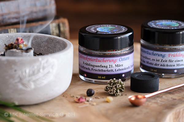Mit einer kleinen Räucherzeremonie begrüßen wir den Frühling und freuen uns auf die kommende helle und warme Jahreszeit. Für die Räucherung eignen sich ganz besonders Harze und Kräuter mit reinigender und segnender Wirkung, wie zum Beispiel Weihrauch, Myrrhe, Dammar, Salbei, Lavendel, Muskatnuss, Lemongras und Rose sehr gut. Mit dem aufsteigenden duftenden Rauch lassen wir das Alte und Vergangene endgültig los und schauen voller Zuversicht in die Zukunft.