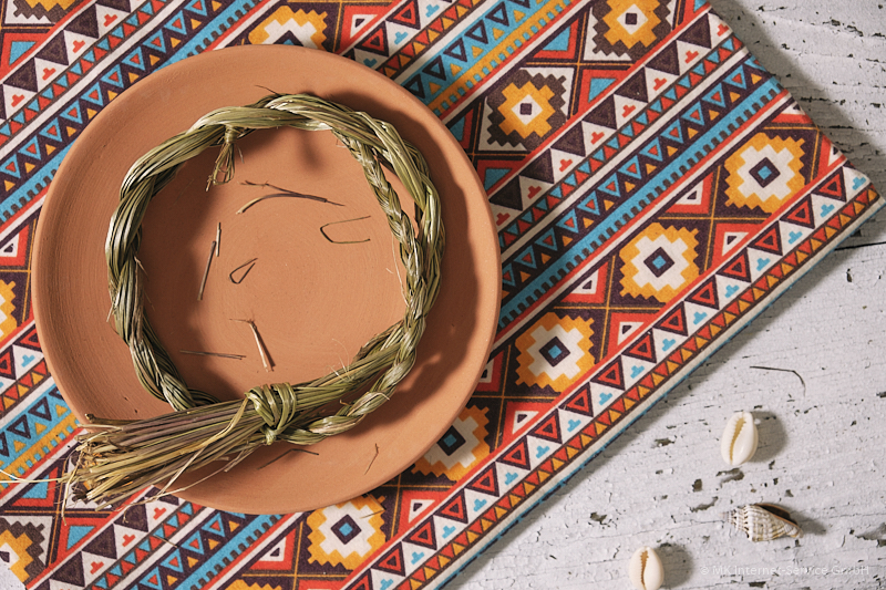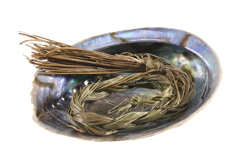 - Sobald der Zopf glimmt, legen ihn auf eine feuerfeste Räucherschale oder einen Teller, um eventuell herabfallende Asche aufzufangen. Indigene verwenden dazu gerne auch eine Abalone-Schale, die das Element Wasser symbolisiert.