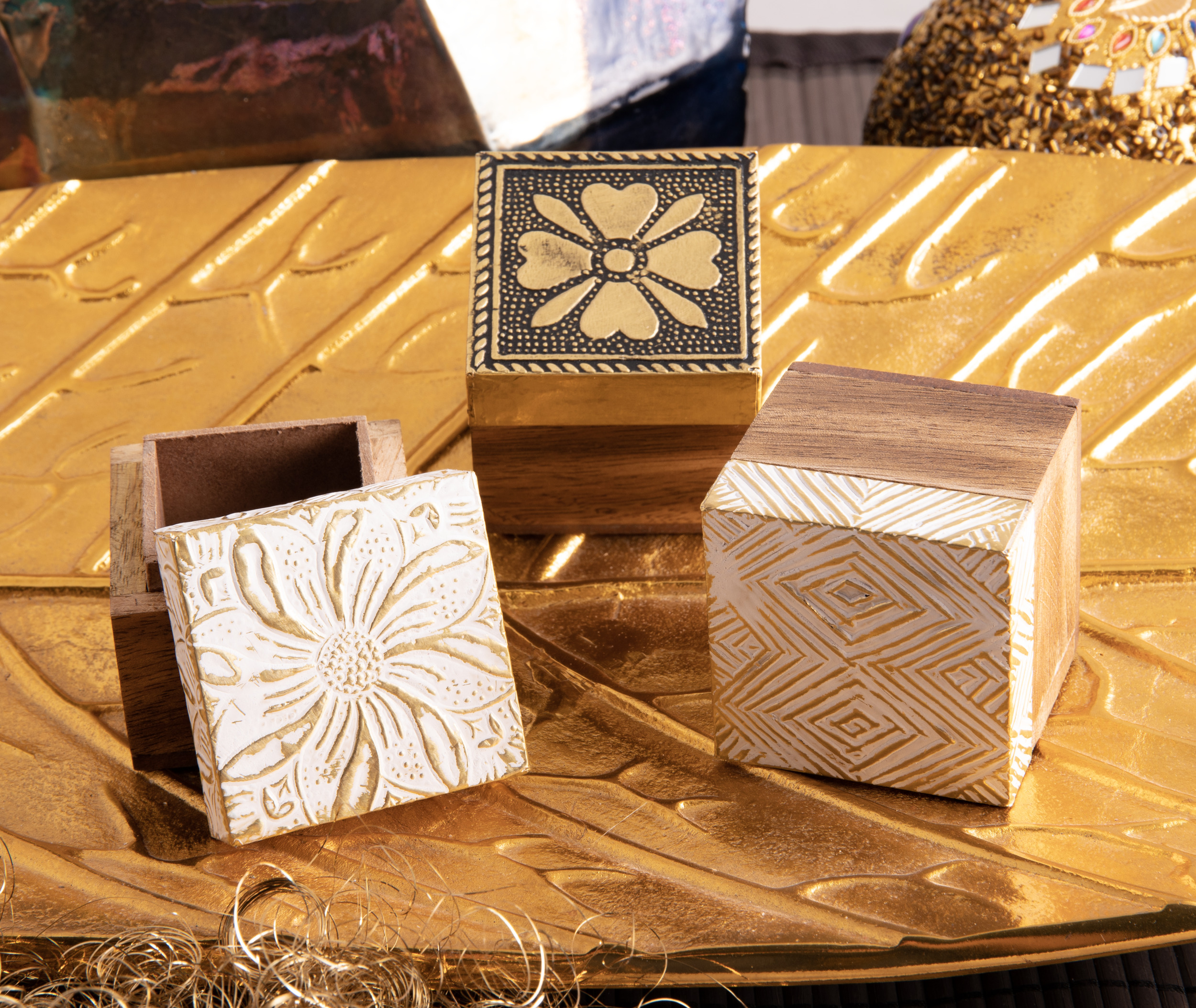 Weiterführende Links zu "Holzboxen aus Mangoholz mit Goldverzierung (3er Set)"