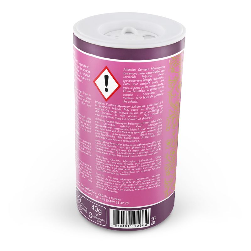 Dieser 100% natürliche Duft wird aus Pflanzen gewonnen. Das Staubsaugerpulver besteht aus natürlichen Hölzern und Pflanzen und ätherischem Lavandinöl.