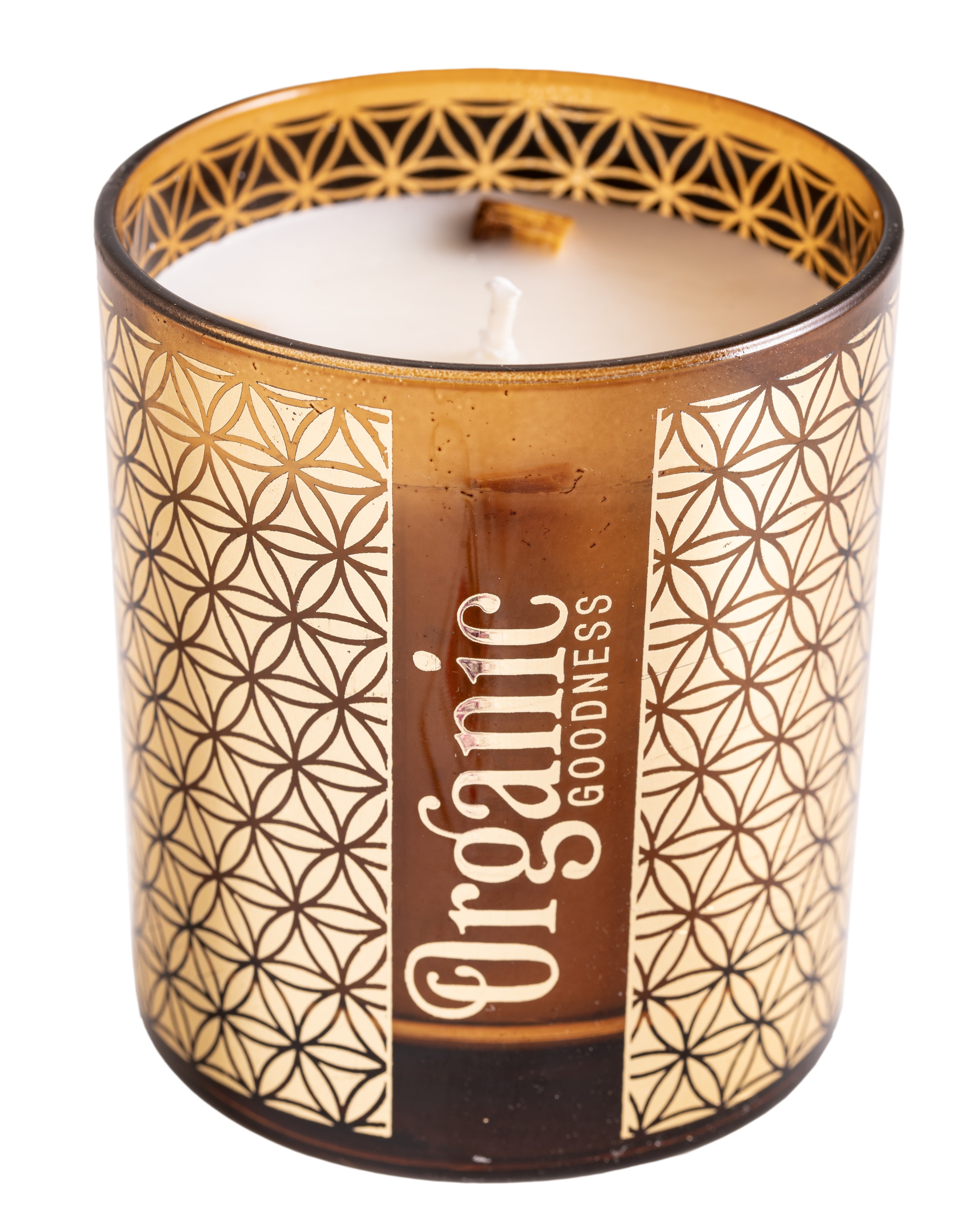 - Natürliche Duftkerze aus Sojawachs im Glas mit Muster "Blume des Lebens"
