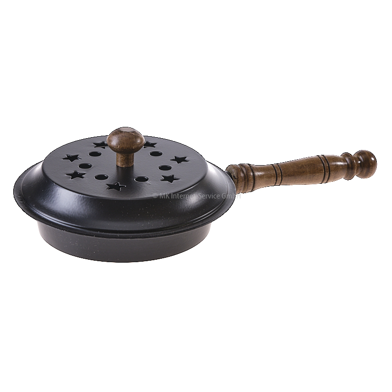 Räucherpfannen eignen sich besonders gut zum Ausräuchern von Häusern und Räumen. Der Holzgriff nimmt die Hitze nicht an und bleibt angenehm warm. Dadurch können Sie die Räucherpfanne auch für längere Zeit in der Hand halten und herumtragen.
