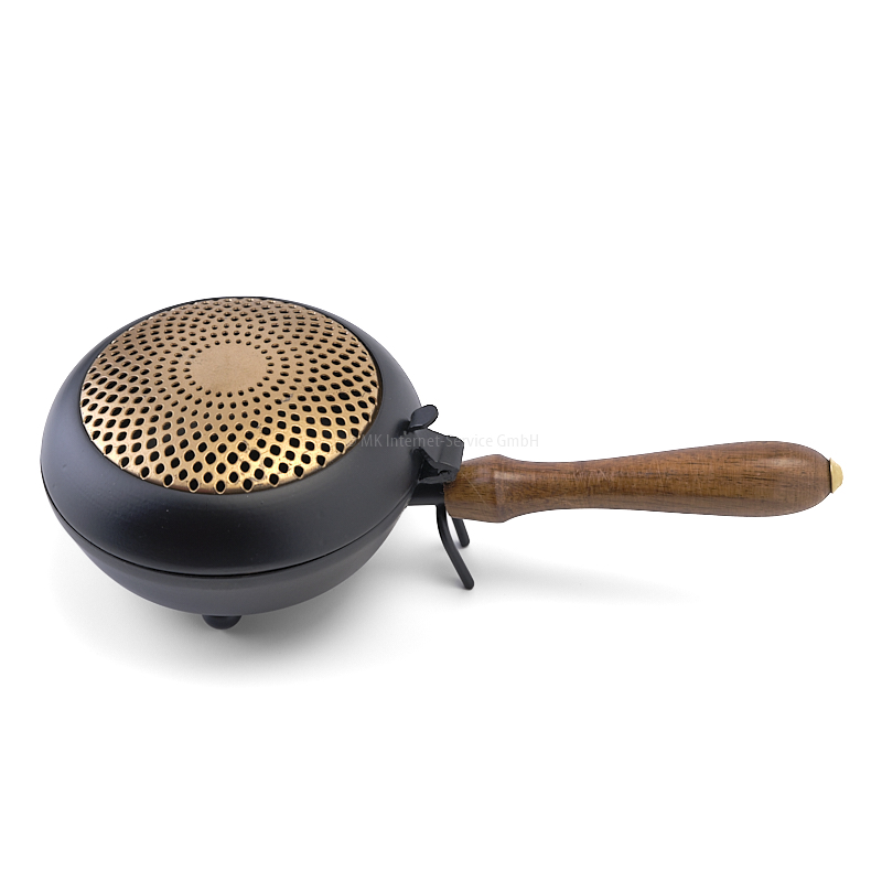 Klassisches und dekoratives Räuchergefäß aus Eisen mit goldgefärbtem Eisendeckel und Holzgriff.... mehr