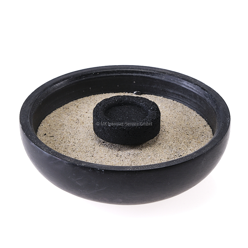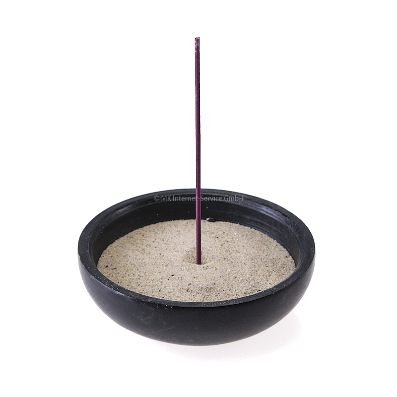 - Die mit Sand gefüllte Schale können Sie auch als Halter für Räucherstäbchen oder Räucherkegel verwenden, indem Sie die Räucherstäbchen in den Sand stecken bzw. die Räucherkegel auf den Sand stellen.