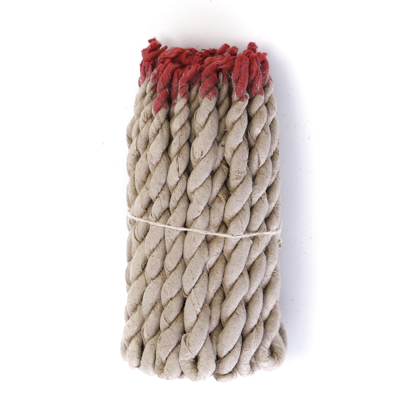Traditionell nach einer alten Überlieferung eines tibetischen Mönchordens hergestellte Räucherschnüre. Sie bestehen aus 25 Zutaten wie rotem und weißem Sandeholz und Safran. Die feine Sandelholznote lässt einen harmonischen, weichen Duft entstehen.