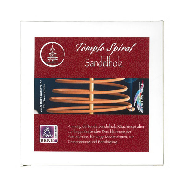 Anmutig duftende, 100 % naturreine Räucherspiralen Sandelholz-Räucherspiralen zur langanhaltenden Durchlichtung der Atmosphäre, für lange Meditationen, zur Entspannung und zur Beruhigung.