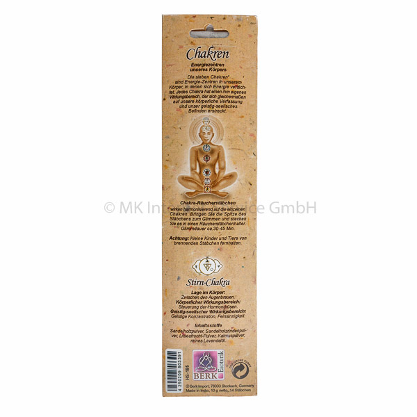 Diese ayurvedischen Räucherstäbchen wirken harmonisierend auf das Dritte Auge - Stirn-Chakra.