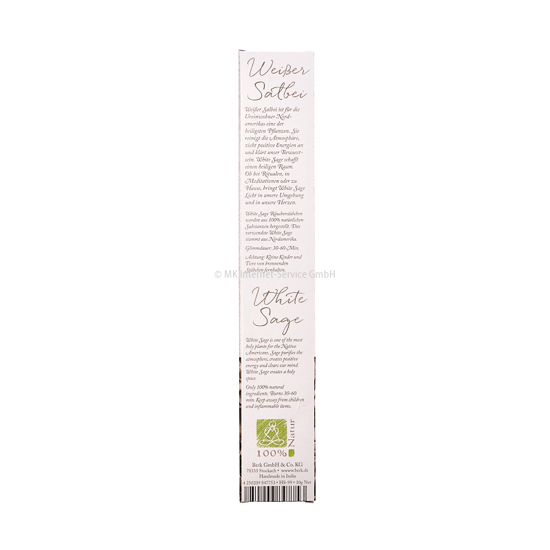 Die Räucherstäbchen Weißer Salbei werden aus 100% natürlichen Substanzen hergestellt. Der verwendete weiße Salbei stammt aus Nordamerika.