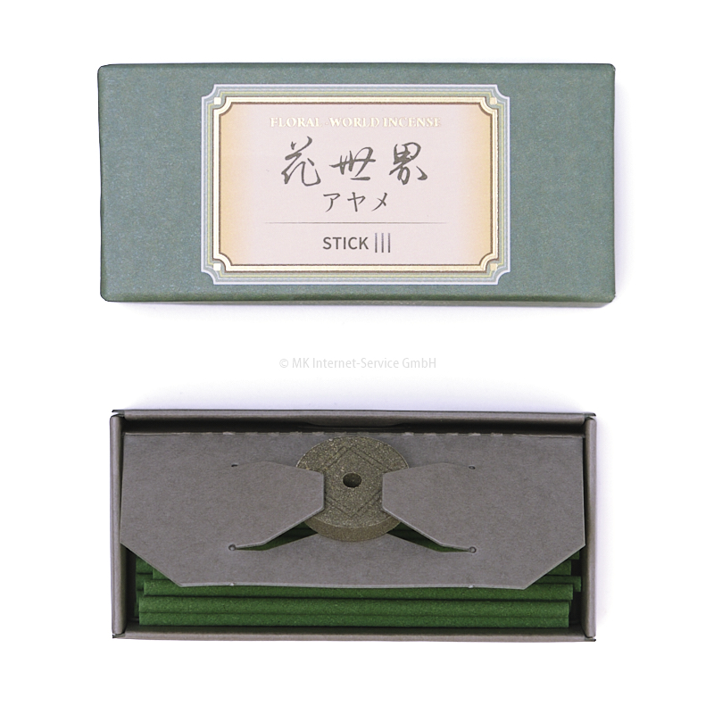 Japanische kurze Räucherstäbchen der Extraklasse von Shoyeido aus der Serie Floral World mit einer erfrischenden Mischung aus Sandelholz und chinesischen Kräuterdüften.