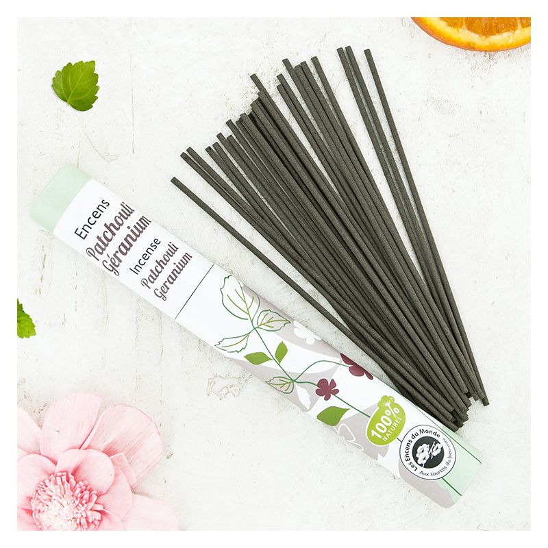 Patchouli, Geranie - Pflanzliche Räucherstäbchen Herbosense Les Encens du Monde