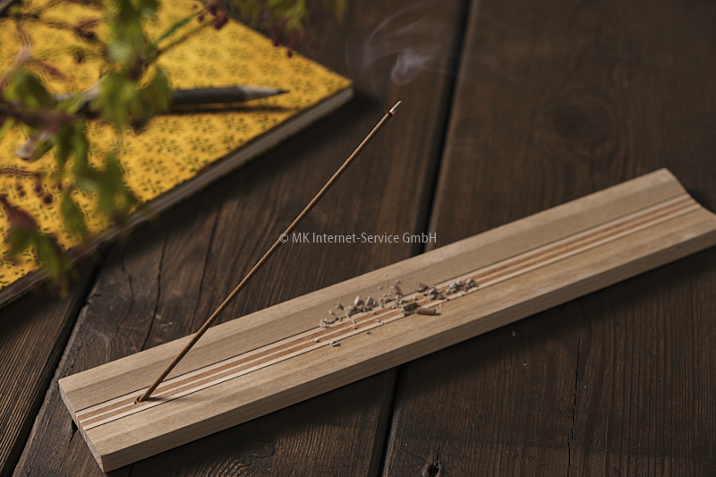 Ein Räucherstäbchenhalter, der sich wohltuend von der üblichen auf dem Markt befindlichen Massenware abhebt, funktional und edel im Design und den verwendeten Materialien. Er integriert sich nahtlos in jedes vorhandene Wohnambiente und verrichtet dort schlicht seine Arbeit.