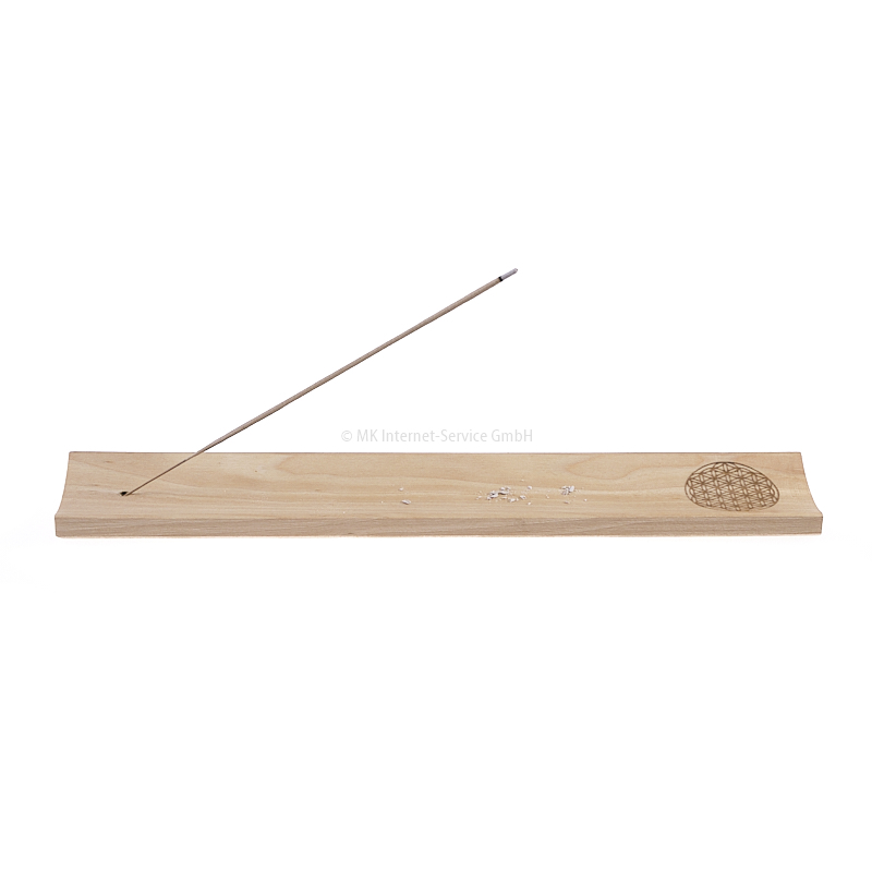 Klassischer handgefertigter Räucherstäbchenhalter aus Massivholz mit Hohlkehle und Gravur "Blume des Lebens" in einem edlen und minimalistischen Design
