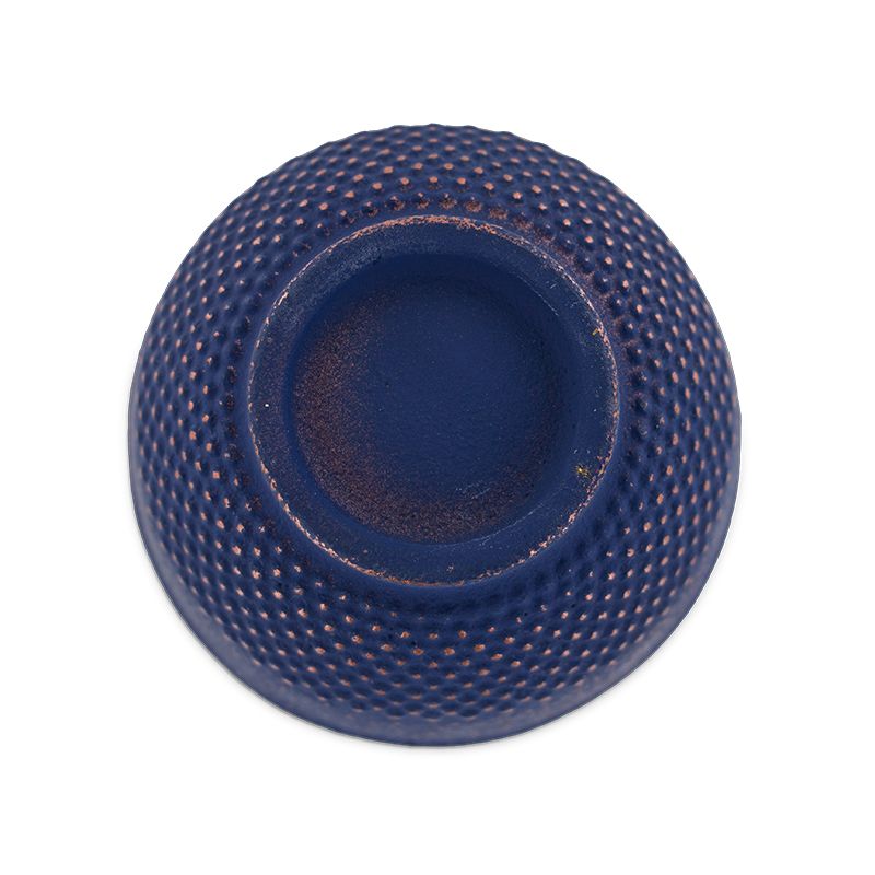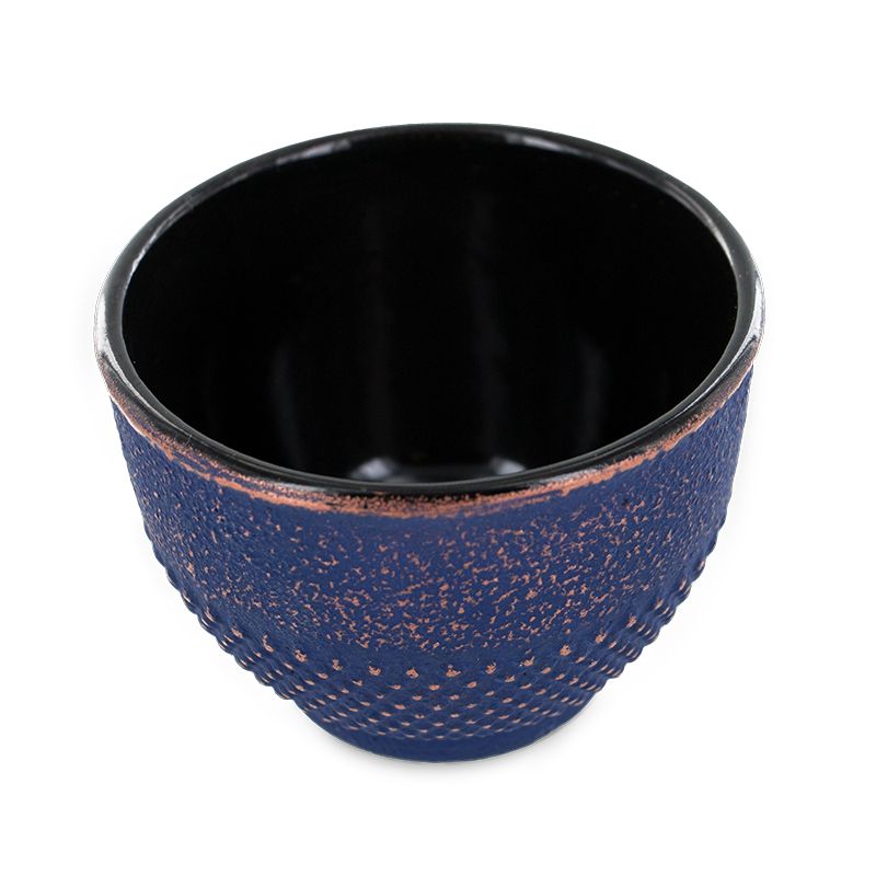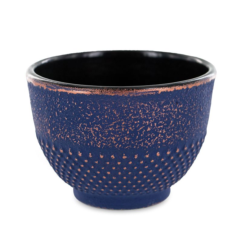 Hübsches Gefäß aus blauem Gusseisen mit Ziervergoldung, hergestellt nach alter handwerklicher Tradition in der chinesischen Region Guangdong. Die Schale kann sowohl als Räucherschale als auch als Teetasse verwendet werden.