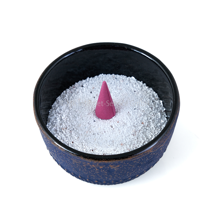 Verwendung als Räucherschale: Das Gefäß eignet sich sehr gut als Halter für Räucherstäbchen und Räucherkegel: Dazu füllen Sie die Schale mit Sand, Granulat oder Asche. Stecken Sie ein oder mehrere Räucherstäbchen in den Sand oder stellen Sie den Räucherkegel in die Mitte auf den Sand.