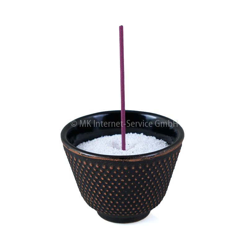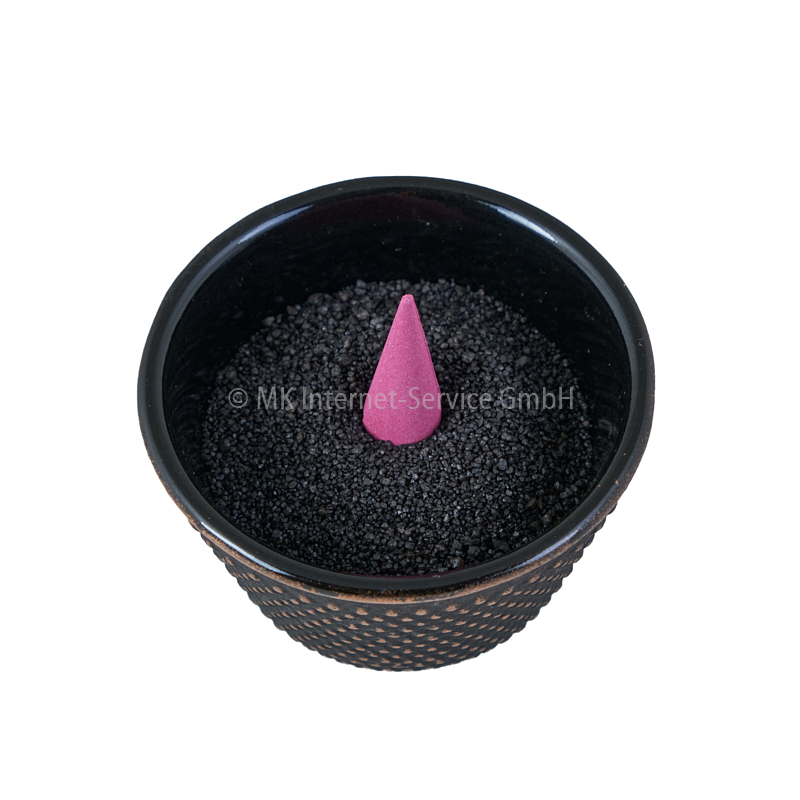Verwendung als Räucherschale: Das Gefäß eignet sich sehr gut als Halter für Räucherstäbchen und Räucherkegel: Dazu füllen Sie die Räucherschale mit Sand, Granulat oder Asche. Stecken Sie ein oder mehrere Räucherstäbchen in den Sand oder stellen Sie den Räucherkegel in die Mitte auf den Sand.