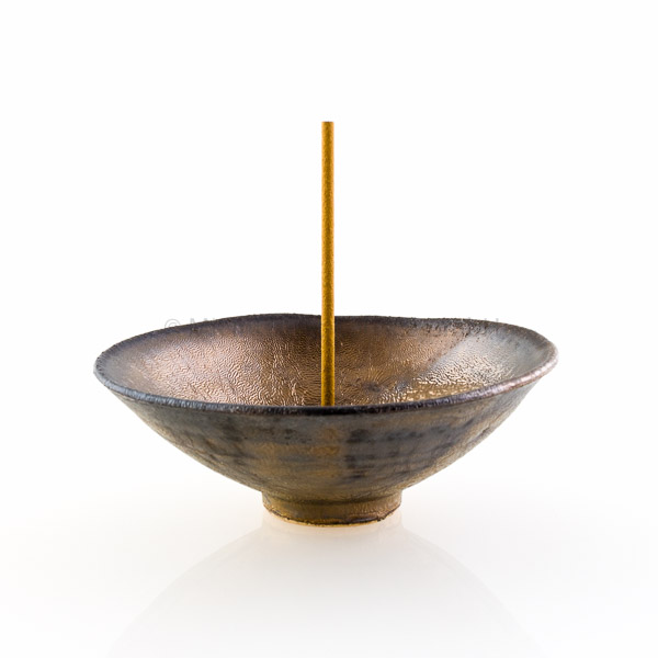Sehr schöner, beliebter Räucherstäbchenhalter aus Keramik im typisch japanischen Stil mit kleinem Fuß. Klassische Form mit Loch in edlen Gold-Metallic-Tönen. Passt in jedes Ambiente!
