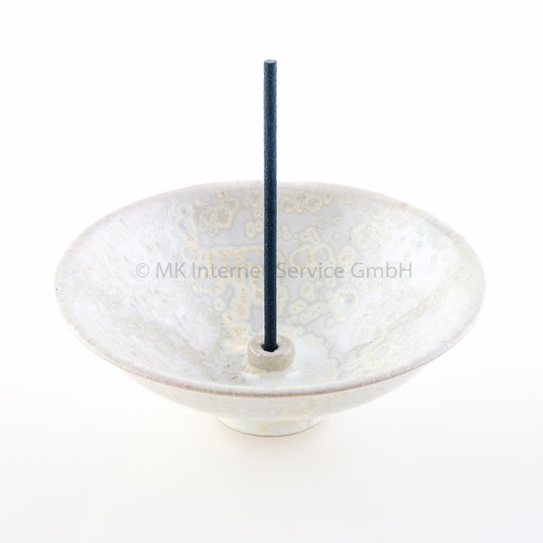 Sehr schöner, beliebter Räucherstäbchenhalter aus Keramik im typisch japanischen Stil mit kleinem Fuß. Klassische Form mit Loch in schönen Perlmutt-Tönen. Passt in jedes Ambiente!