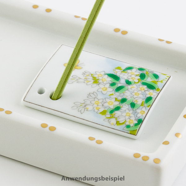 Tipp: Legen Sie den Halter in eine Schale mit Granulat oder auf ein Tablett, um so die Asche aufzufangen oder kombinieren Sie ihn ganz klassisch und stilvoll mit einem Räucherteller von Shoyeido.