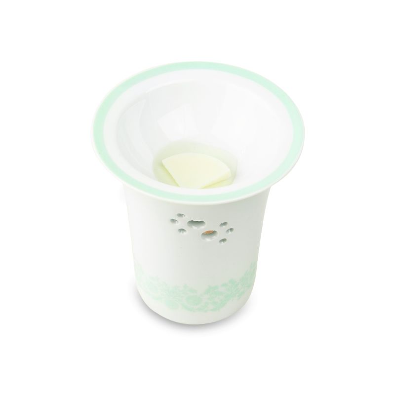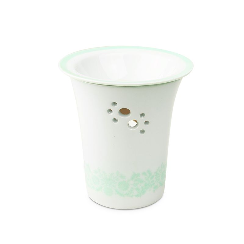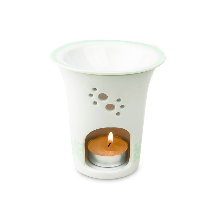 Sehr schöne Duftlampe aus Kunstporzellan mit einem zarten Jasminblüten-Motiv, Räucherstövchen und Aromalampe in einem. Die Duftlampe mit Teelicht ist ideal für die sanfte Räucherung von Harzen, Kräutern, Gewürzen und Blüten sowie das Verdunsten von ätherischen Ölen. Genießen Sie entspannenden, ausgleichenden und beruhigenden Eigenschaften der Aromastoffe als Raumdüfte, zur Reinigung der Atmosphäre oder zur Aromatherapie.