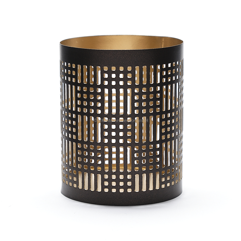 Ohne Sieb können Sie das Gefäß auch als Windlicht verwenden. Das moderne Gittermuster reflektiert die Flamme der Kerze in einem warmen und sanften Licht.