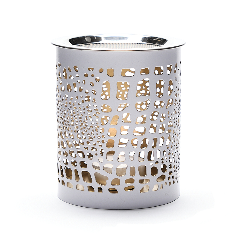 Dieses schöne handgemachte Gefäß aus Metall im Gitterdesign kann sowohl als Weihrauchbrenner als auch als Windlicht genutzt werden.