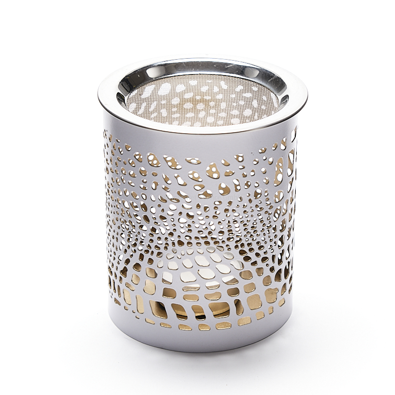 Ohne Sieb können Sie das Gefäß auch als Windlicht verwenden. Das moderne Gittermuster reflektiert die Flamme der Kerze in einem warmen und sanften Licht.