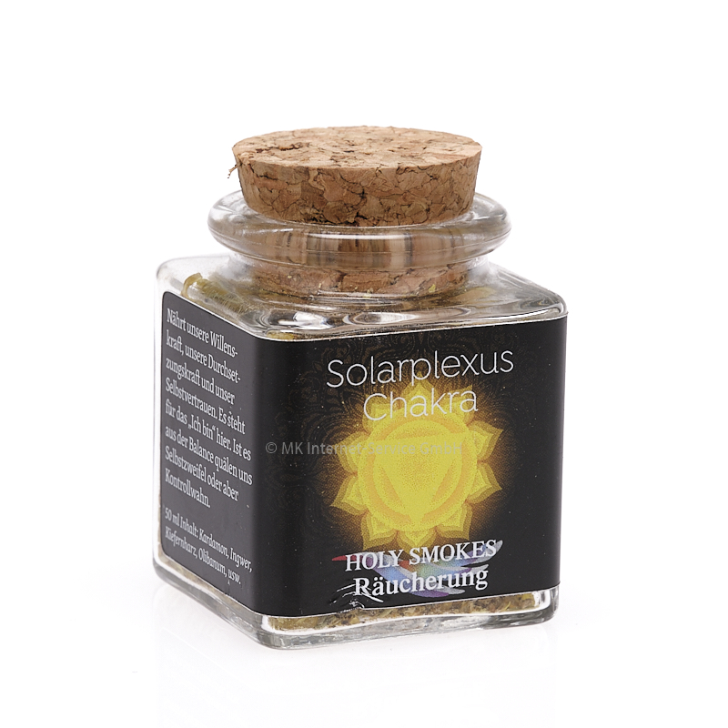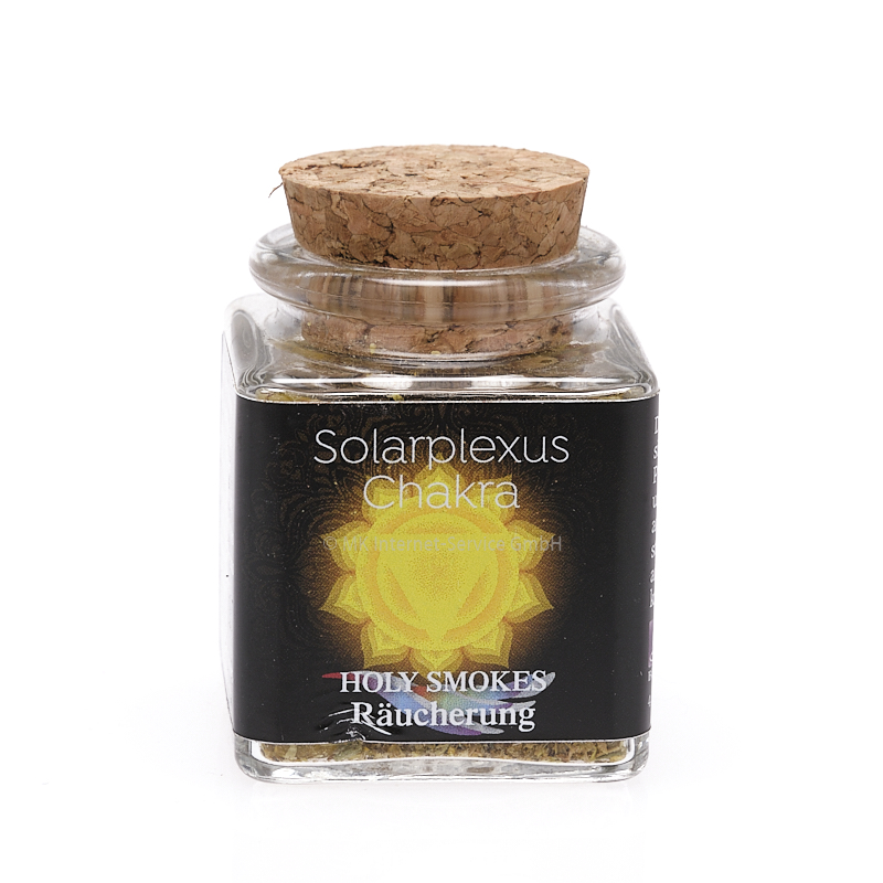 Räucherung für das Solarplexus-Chakra. Nährt unsere Willenskraft, unsere Durchsetzungskraft und unser Selbstvertrauen. Der Solarplexus steht für unsere innere Mitte, die Unterscheidungskraft zwischen Seelenweisheit und Konditionierung. Ist es aus der Balance quälen uns Selbstzweifel oder aber Kontrollwahn.