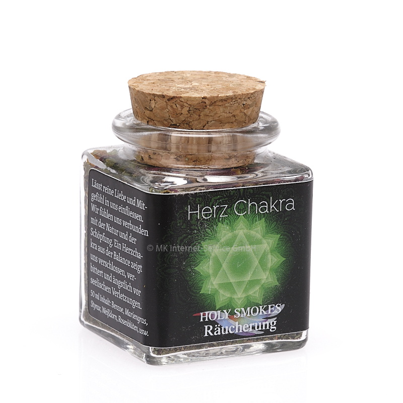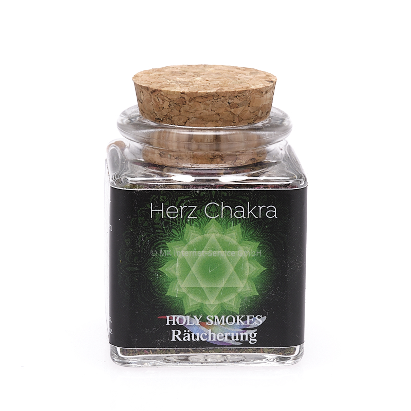 Räucherung für das Herz-Chakra. Lässt reine Liebe und Mitgefühl in uns einfliessen. Wir fühlen uns verbunden mit der Natur und der Schöpfung. Ein Herzchakra aus der Balance zeigt uns verschlossen, ein wenig verbittert und ängstlich vor seelischen Verletzungen.