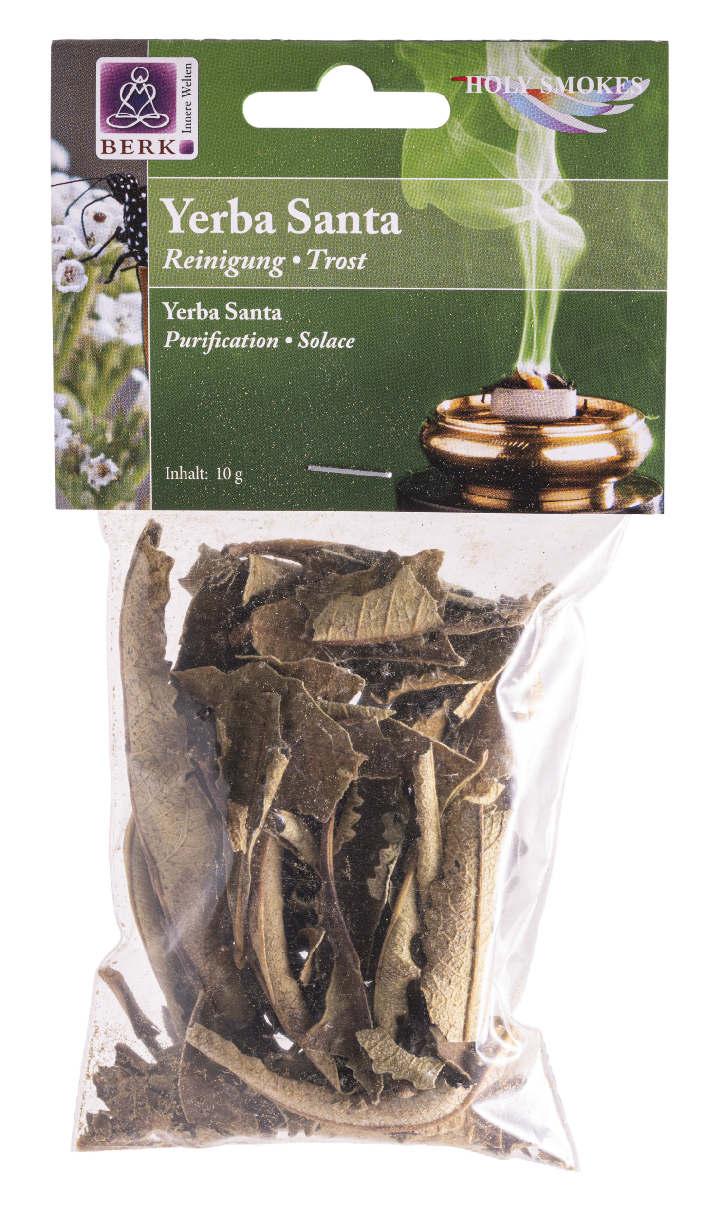 Geräuchert verbreitet Yerba Santa einen feinen, wohlriechenden Duft, der wärmt und die Atmosphäre aufhellt. Yerba Santa ist ein Lichtbringer, den man auch gut alleine Räuchern kann.