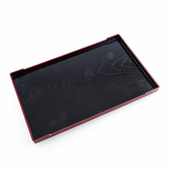 Schwarzes Tablett mit rotem Rand im typisch japanischen Stil. Leicht und stabil. Auch schön zum Gestalten von Duftgärten.