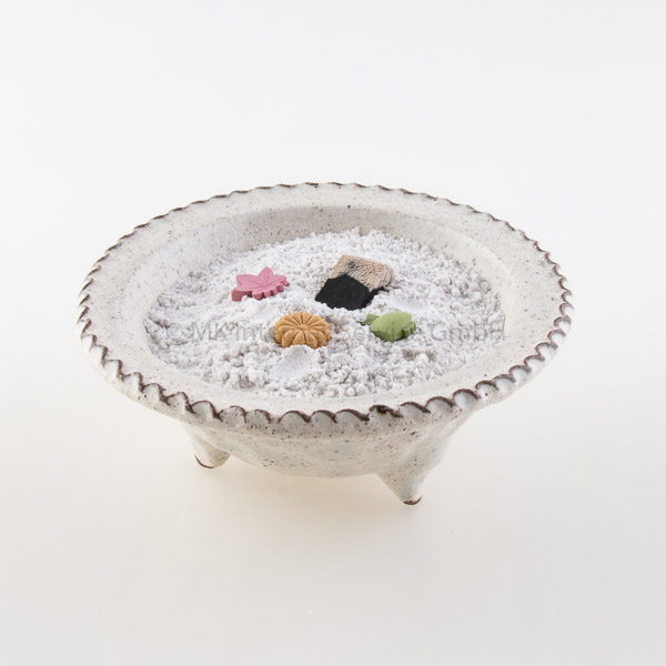 Die Räucherschale wird zu ca. zwei Dritteln mit japanischer Räucherasche oder Feuersand gefüllt und ist vielseitig einsetzbar: