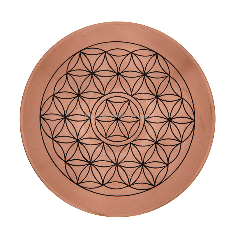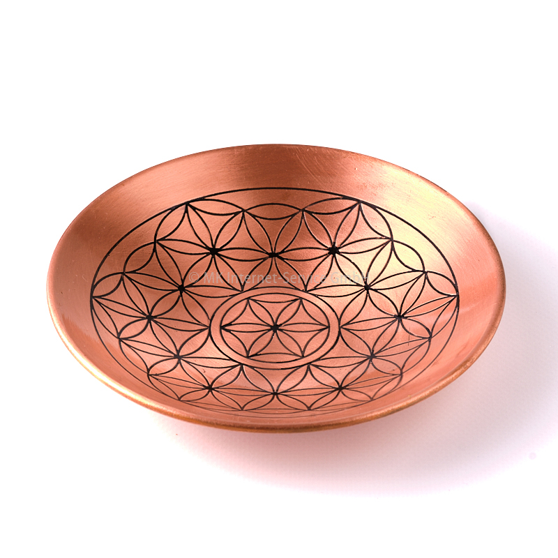 Kupferteller mit Blume des Lebens für Smudge Sticks, lose Kräuter, Palo Santo