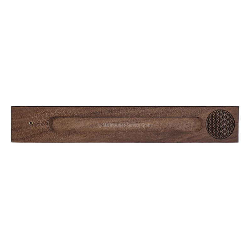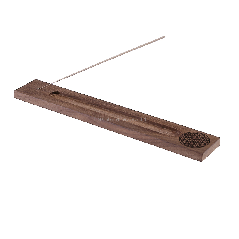 Klassischer handgefertigter Räucherstäbchenhalter aus Massivholz mit Nut und Gravur "Blume des Lebens" in einem edlen und minimalistischen Design