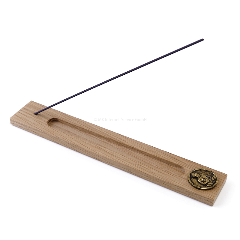Der Räucherstäbchenhalter ist mit einer dekorativen goldfarbigen Tempelmünze aus Messing mit Buddha-Motiv verziert. Die heilende und friedvolle Schwingung des Buddha berührt dich tief in deinem Sein. Sie führt dich in deine innere Mitte, beruhigt dich und schenkt dir tieferen inneren Frieden.