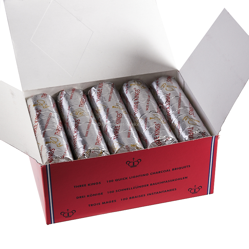 - 1 Karton mit 10 Rollen à 10 Stück Räucherkohletabletten, ø 4 cm