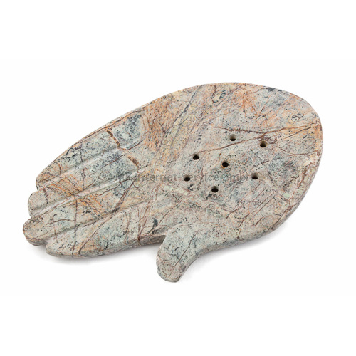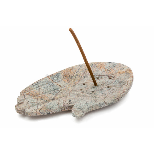 Dekorativer Räucherstäbchenhalter aus schön gemasertem Stein. Durch die grösseren Löcher sehr gut für tibetische Räucherstäbchen und für Räucherkegel geeignet.